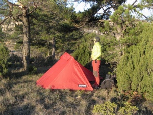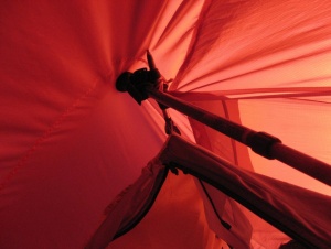 apaño con los bastones para aguantar la tienda
