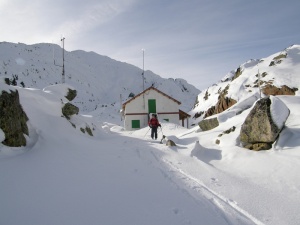 Sortint del refugi amb el Certascan al fons