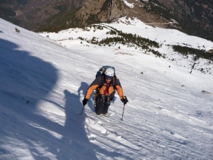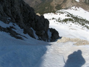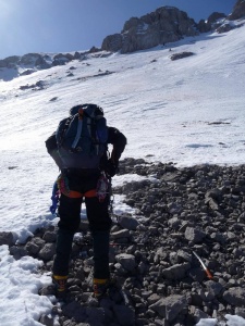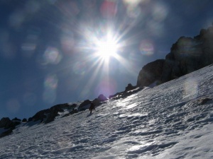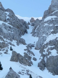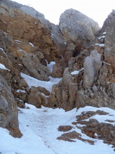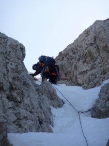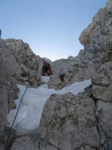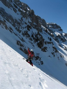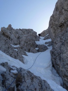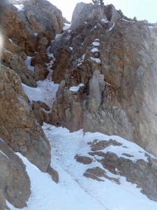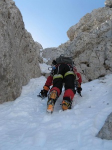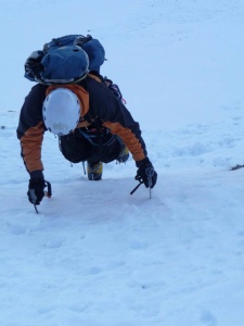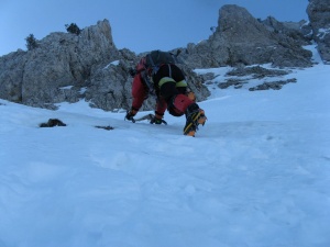 Primera pala del corredor, la poca nieve dura que encontramos...