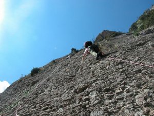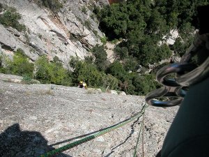 Nos acercamos a la via... hay unas cuantas cordadas subiendo.