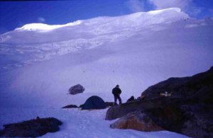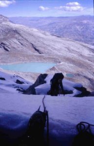Llegando al CB de la Laguna Legiacocha en el nevado Copa
