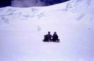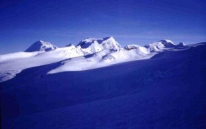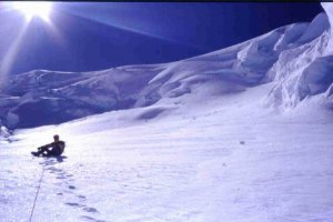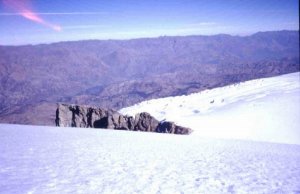 Plató glaciar Copa-Hualcán. Al fondo saca la cabeza el Huascarán S