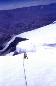 Currandonos el muro de la canaleta. 8 metros de 90º en hielo a 5600 m de altura ... nos costó un guevo!!