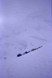 Las tiendas en el campo 2 (5950 m) en el Huasca. El tiempo se empieza a enmarronar...y a la mañana siguiente nos tenemos que retirar a 6400 m pol mal tiempo!!! no saque la camara en too el dia del frio que hacia y las pocas ganas de echar fotos