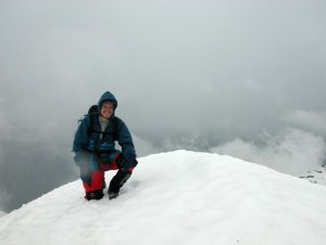 MadJaume a pocos metros de cima... la arista de nieve es preciosa