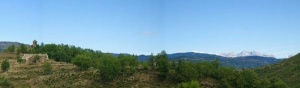 Panorámica llegando al pueblo abandonado de Otín con Monte Perdido al fondo