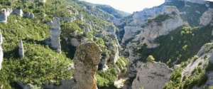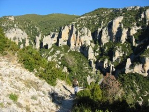 Entrada al cañón del Mascún con las curiosas formaciones de la Ciudadela y la Cuca Bellostas