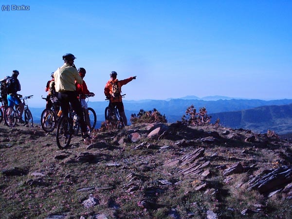 “Lo que el tÃo de naranja (o sea yo....) intenta señalar...es aquella montaña del fondooo...!!!! El Montseny.... por donde pasariamos al dÃa siguiente.... no quedaba nada...!!!”