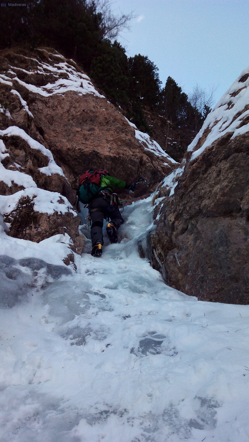 Hielo en el Pedraforca, resaltes y columna Verdet