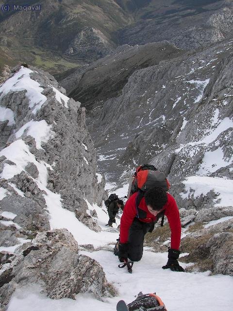 “uf, qué poca nieve.... como en todas partes este invierno, pero parece buena para cramponear.....