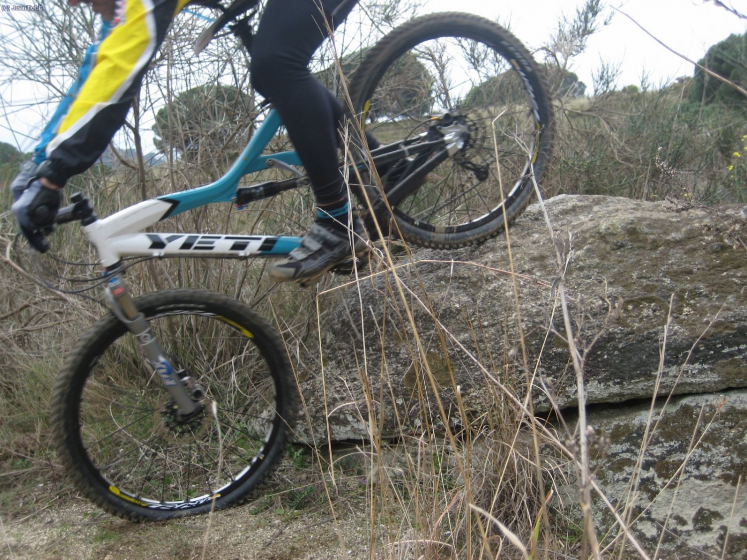 “Mamonazooooooo jejeje Lástima, si me hubieses pillado entero la foto sería guapísima!! Parezco bueno y todo, juas juas. Igualmente está bien, ahí se ve como trabaja la horquilla y como amortigua el neumático.”