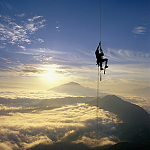 1945...Piz Badile...\"el miedo me da alas y subo aprisa,muy aprisa,un poco barbaramente.Detras de mi las cuerdas pesan por el agua que las impregna.En la parte alta la brecha esta atravesada por dificiles paredes verticales;hay que emplearse a fondo.La roca esta resbaladiza bajo la pelicula de agua.Llueve,lueve\"...---GASTON REBUFFAT---